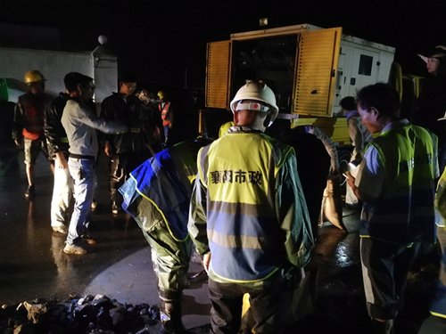 接到緊急救援命令后,市政集團(tuán)二公司經(jīng)理馮陽(yáng)陽(yáng)在現(xiàn)場(chǎng)短短10分鐘內(nèi)火速集結(jié)分公司及項(xiàng)目管理人員10余人、工人20余人以及一臺(tái)皮卡車、二臺(tái)發(fā)電機(jī)組、6臺(tái)污水泵、趕赴積水路段開展搶險(xiǎn)。瓢潑大雨中,黨員干部、工人師傅、青年骨干手拉手、肩并肩,撬井蓋,鏟泥漿,扛發(fā)電機(jī),架泵抽水。開足馬力,在搶險(xiǎn)最前線,開展了一場(chǎng)“與時(shí)間賽跑”的大會(huì)戰(zhàn)。